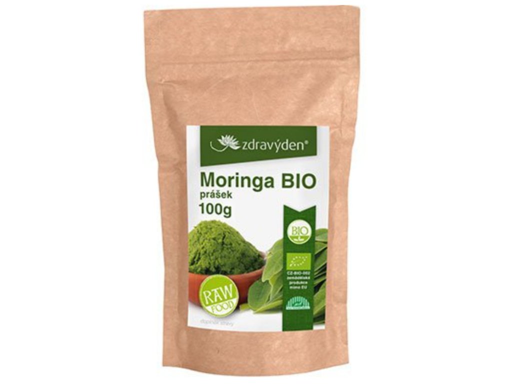Složení: RAW - 100% listy moringy olejodárné (Moringa oleifera) v prášku BIO,