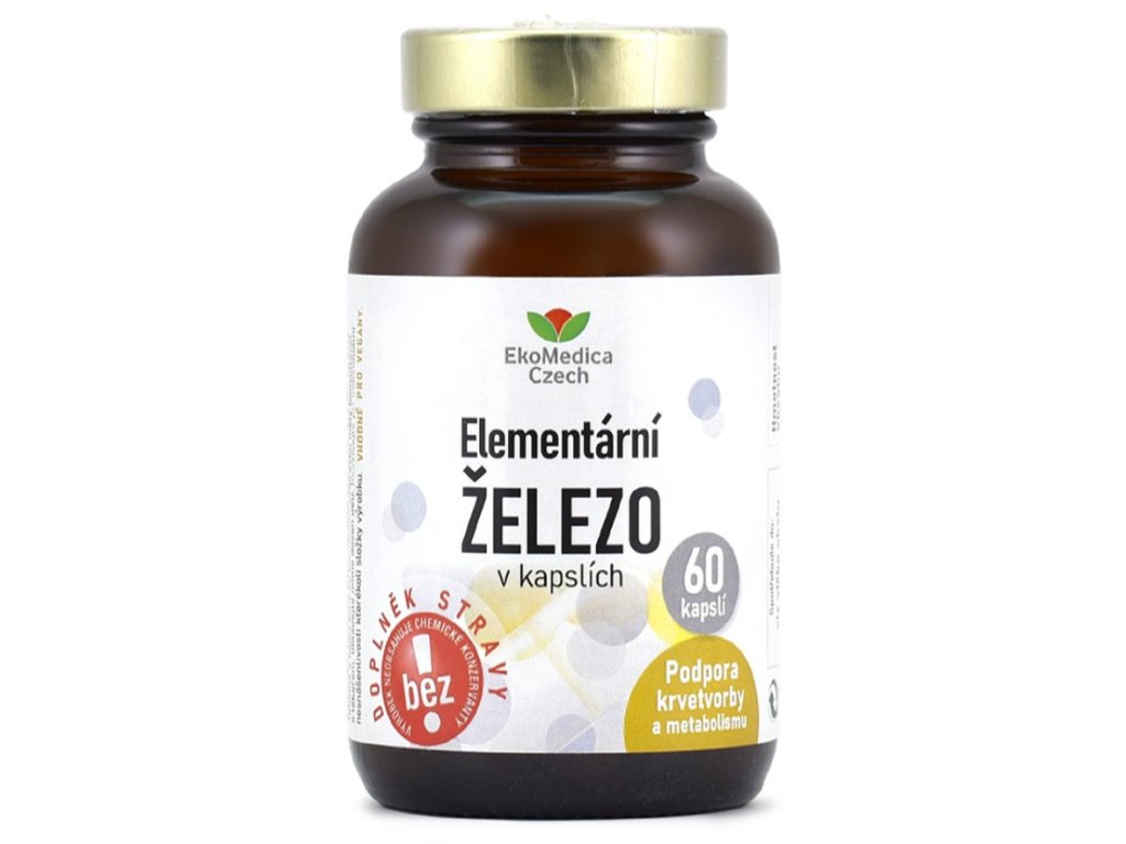 - Elementární železo - přispívá k tvorbě červených krvinek a přenosu kyslíku, podporuje vitalitu a snižuje únavu.
